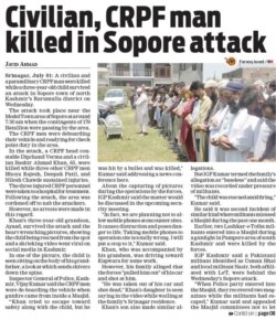 'گریٹر کشمیر' کی رپورٹ کے مطابق فائرنگ کا واقعہ شمالی کشمیر کے علاقے سوپور میں پیش آیا۔ اس واقعے میں جہاں ایک سیکیورٹی اہلکار ہلاک اور تین زخمی ہوئے۔ وہیں ایک عام شہری بشیر احمد خان بھی فائرنگ سے مارے گئے۔ ان کے ہمراہ ان کا تین سالہ نواسہ بھی تھا تاہم وہ فائرنگ میں محفوظ رہا۔