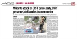 اسی طرح جموں سے شائع ہونے والے ایک اور انگریزی اخبار 'ارلی ٹائمز' نے واقعے کی خبر صفحہ تین پر لگائی۔