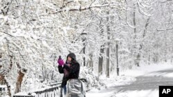 واشنگٹن سے بوسٹن تک کے امریکہ کے وسیع مشرقی علاقے پر ہفتے کی رات شدید برف باری ہوئی، جس میں نیو یارک سٹی کا جنوبی علاقہ بھی شامل ہے، جہاں طوفانی برسات ہوئی اور سلیٹ گرتی رہی۔