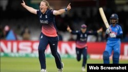 انگلش ٹیم کو ایک اور نقصان کپتان ہیتھر نائٹ کی وکٹ کی صورت میں اٹھاناپڑا، وہ صرف ایک رن بناکر پونم یادیو کی گیند پر ایل بی ڈبلیو ہوگئیں۔