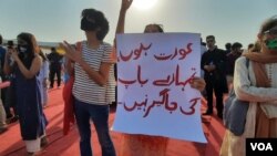 وہی دوسری جانب خواتین کی ایک بڑی تعداد رنگ برنگے کپڑوں میں ملبوس ہاتھ میں پلے کارڈ اٹھائے لوگوں کی توجہ کا مرکز بنی رہیں۔ جس میں جبری گمشدگیوں، جبری تبدیلیٔ مذہب، وراثت میں حصہ نہ ملنے، کم عمری کی شادی، ریپ اور تشددکے خلاف نعرے درج تھے۔