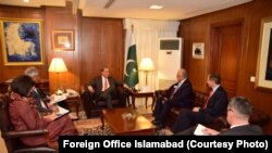 پاکستان کی وزارتِ خارجہ کے ترجمان ڈاکٹر محمد فیصل نے ٹوئٹر پر جاری ایک مختصر بیان میں کہا ہے کہ ملاقات کے دوران امریکی ایلچی نے صدر ڈونلڈ ٹرمپ کی اس خواہش کا اعادہ کیا کہ پاکستان افغانستان میں امن اور استحکام کے حصول کے لیے امریکہ سے تعاون کرے۔