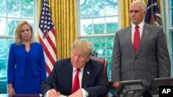 صدر ڈونالڈ ٹرمپ نےانتظامی حکم نامے پر دستخط کر دیے ہیں جس کے نتیجے میں میکسیکو امریکہ جنوبی سرحد پار کرنے والے غیر قانونی تارکین وطن کے خاندانوں اور اُن کے بچوں کو علیحدہ نہیں کیا جائے گا۔